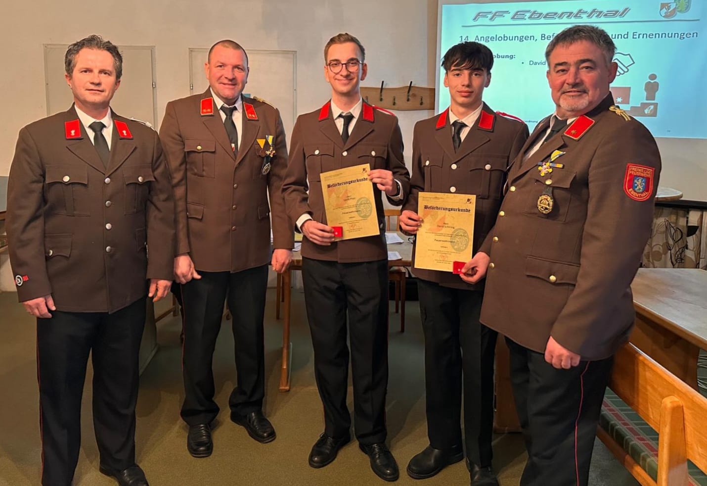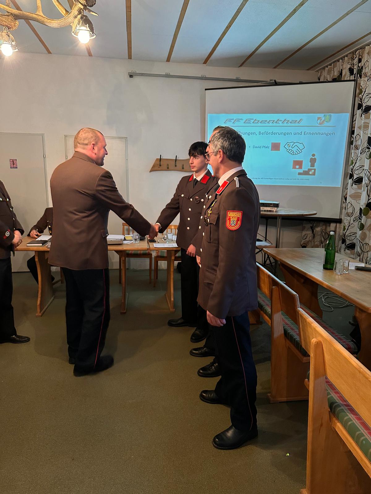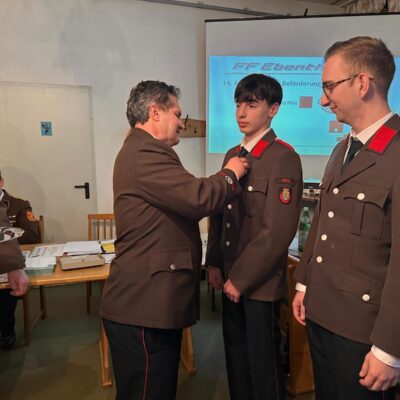 Der anwesende Christoph Veit gratulierte dem neu gewählten Kommando herzlich und bedankte sich bei allen Mitgliedern der FF Ebenthal für ihren unermüdlichen Einsatz und die wertvollen Dienste für die Bevölkerung. Zum Abschluss der Mitgliederversammlung wurden noch zahlreiche Ehrungen vorgenommen. Außerdem wurde FM David Pfalz als neues Mitglied der FF Ebenthal angelobt!